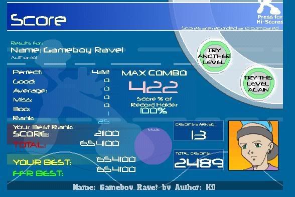 ![]() YES. YES. YES. YESSSSS. Backround + Lag + One-Handed trills = Evil song. =) It hasn't recorded in levelrank yet, but I guess I have to give it some time. My other AAAs from today took a while. |