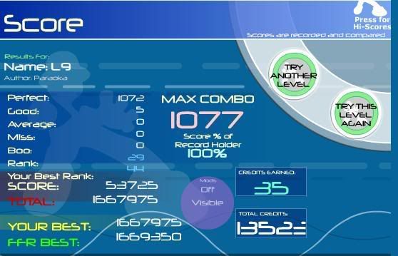 8/9 - Crowdpleaser - 1,410,000 or higher 6/7 - For FFR - 5 or fewer 7/9 - Otaku Speedvibe [Oni] - 20 or fewer 5 points left =/ |