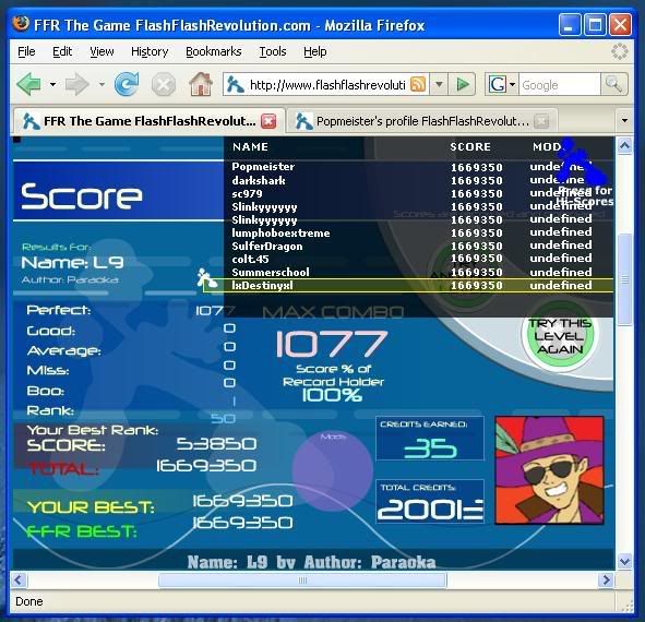 http://www.flashflashrevolution.com/...play/12133641/ ![]() Edit: Holy crap, this one took 1 try too. I remembered there was a trill in this one, but I remembered it to be an up/down trill, but then a left/right trill came. Don't know how I managed to get past it. I thought I messed up at the end of the trill. http://www.flashflashrevolution.com/...play/12136553/ ![]()
