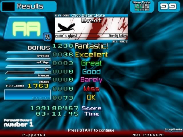 ![]() Only for combo ![]() Maybe I can get a REAL AA of this someday if I stopped sucking ass at those lefty triplets. ![]() Oh yeah, and this much closer to AA... ![]() Last edited by Ravia; 02-14-2008 at 07:47 PM.. |
