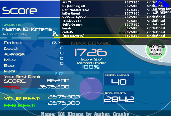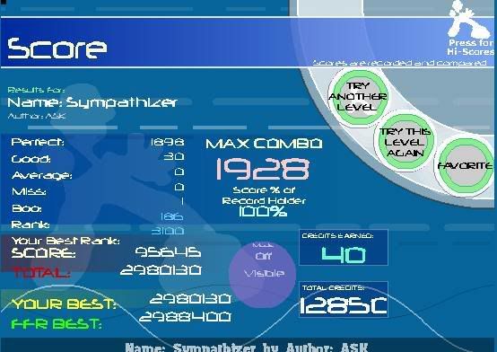 I choked so hard. Had 15 goods on Pants then choked at the very end, slipped up like 10 notes from the end, got two more goods an average a miss and a boo or two.