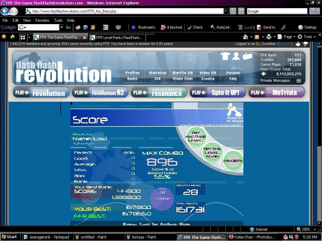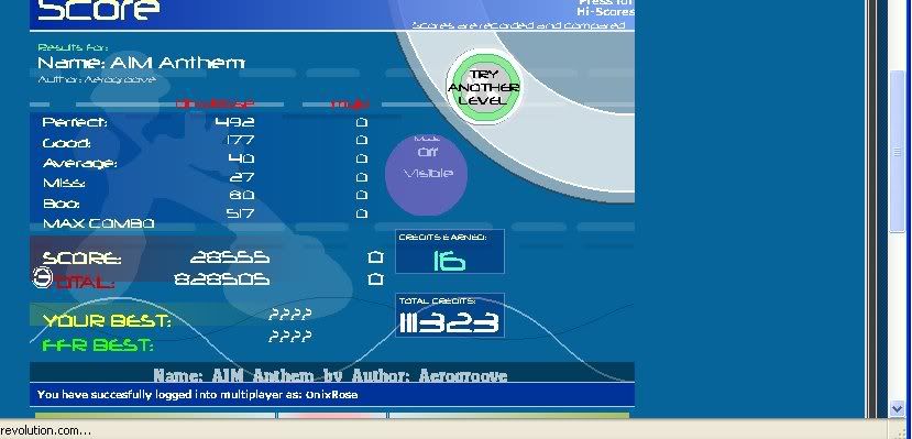 ![]() 2778850 ![]() And here are the playbacks too: Epidermis: http://www.flashflashrevolution.com/...eplay/9855693/ Choprite: http://www.flashflashrevolution.com/...eplay/9856379/ I don't know why they didn't record. |