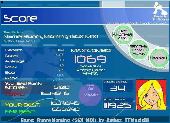 I swear you people must be blind as hell. anyway, things that piss me off... http://www.flashflashrevolution.com/...play/13206964/ http://www.flashflashrevolution.com/...play/13207064/ I booflagged H.T.I.J. twice in a row, first time right after the last step, 2nd time right before the last 2 steps. Not that it's a hard song anyway, I'll AAA right now anyway, that just pissed me off cause it's a 3 minute song, just to screw up in the last second 2 times in a row is a bitch. edit: k AAA'd it, I now have 300 AAA's including tokens, I'll get 300 public today if I keep playing for AAA's, I'm no where near where I should be. x.x Last edited by [TeRa]; 02-26-2008 at 07:57 AM.. |