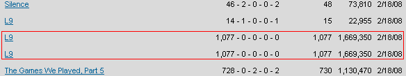 1 darkshark 454 2 smartdude1212 443 3 HammyMcSquirrel 433 4 XXXsmittyXXX 431 5 Sprite- 429 6 lxDestinyxl 424 7 omgitznpv 423 8 colt.45 415 9 sc979 411 10 lumphoboextreme 410 Holy crap, I'm 9th? And still a non-sub too. My 100BB AAA was taken away from me. My rank is in the 50's now. ![]() Edit: omg............................... I finally got past the last 32nd roll and get a ****ing good on the ending streams Air 1,804 - 1 - 0 - 0 - 1 1,805 2,797,455 2/26/08 [x] http://www.flashflashrevolution.com/...play/13228416/