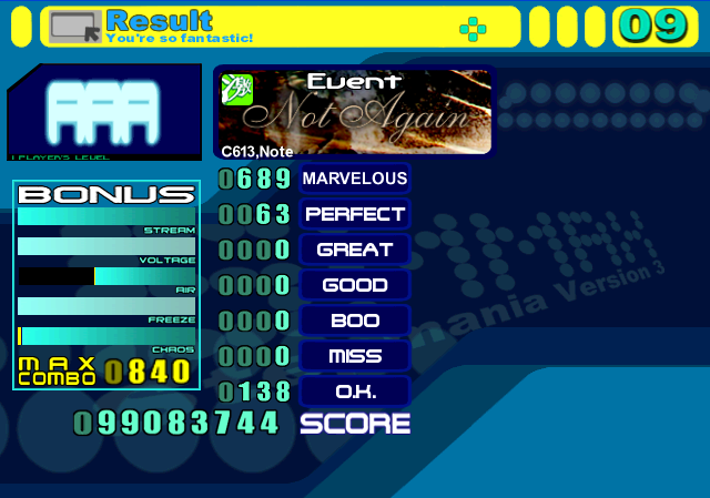 I played it a few times, but can't read those notes in the middle at all. Best run was 891-118-10-0-1-1-0 with 878 combo.