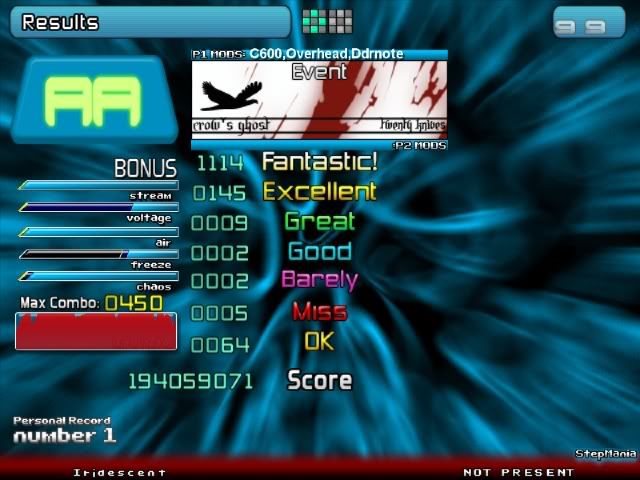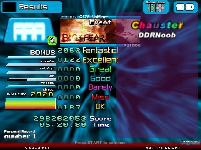 /stepmania secret steroids and wtf that snow05 okay so some scores, not very good single digit misses ![]() idk sightread felt ok ![]() 1.1 rate sucks i'll whore it until i A ![]() reach's stunt flying 2.0 rate again sucks it feels like i could AA ![]() |