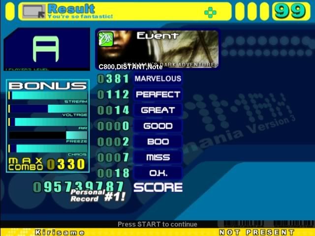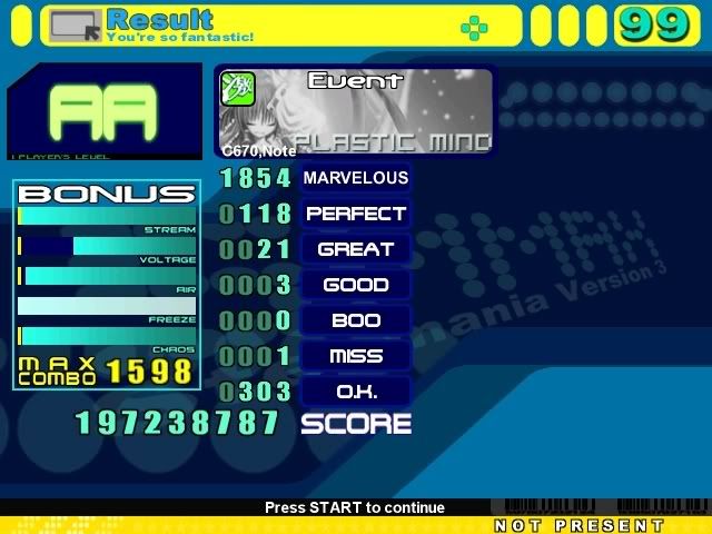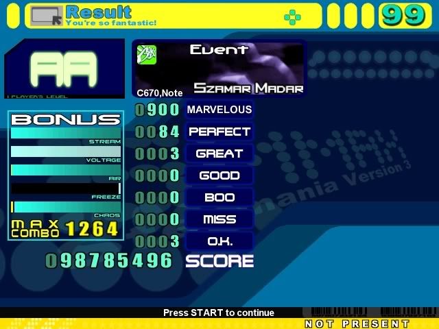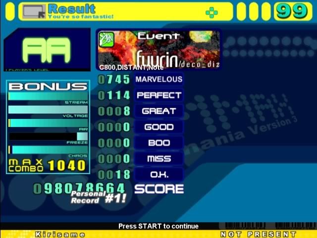 ![]() Sightread, cb from a left hand part. ![]() Couldn't fc the beginning long jacks for some reason :/ ![]() lol Still not AA damnit ![]() Meh, dunno ![]() Hit the beginning up jack and then missed on some other ![]() Cool sightread sdg for me 8)