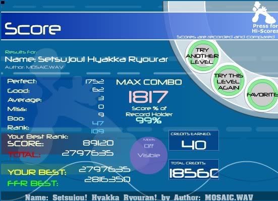 Indeed...Etc. Best Non-AAA Ranks (Before AvMiss Was Fixed): Choprite, Rank 6 [3-0-0-0]; TGWP Part 1, Rank 11 [5-0-0-0]; Otaku Speedvibe Heavy, Rank 13 [1-0-0-0]; Blue Army, Rank 5 [1-0-0-0] |
