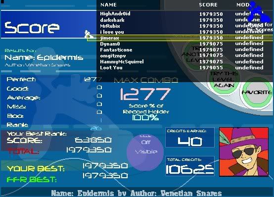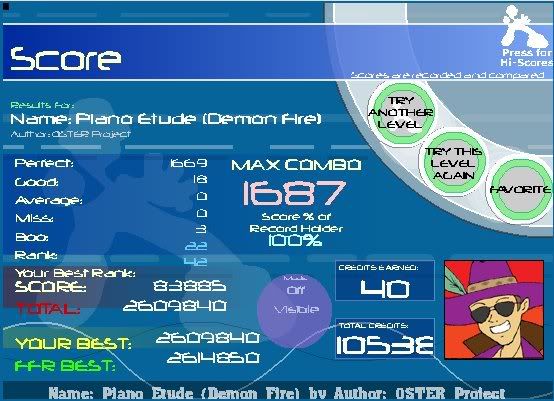 Hajnal 1,986 - 12 - 1 - 1 - 0 1,616 Choprite 1,790 - 6 - 0 - 0 - 0 1,796 Epidermis 1,268 - 4 - 0 - 5 - 2 770 I AAA'd that intire 770 combo, which is the last 770 notes. which is the hardest part of the song, I hate my life atm. I ****ed up on Hanjal, forgot to hit a note in the first triple roll. Choprite was just random. All these were in a row ![]()