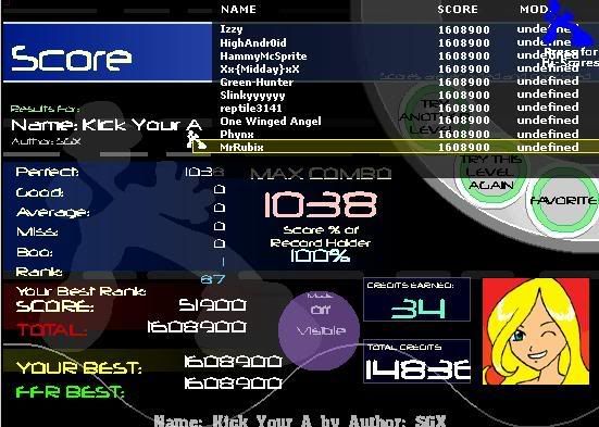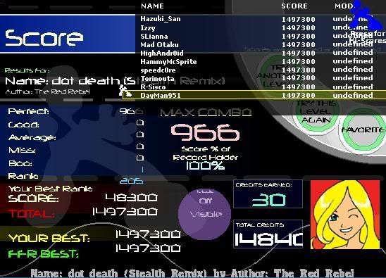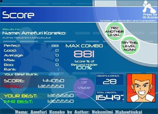 I just had to make it to about the staircases with all perfects then I'd be set. I kept screwing up of course though. I'm gonna reach 100 AAA's today, I can't believe I whored 15 AAA's last night and now I have a big start of 45 million today :P |