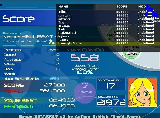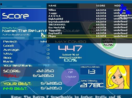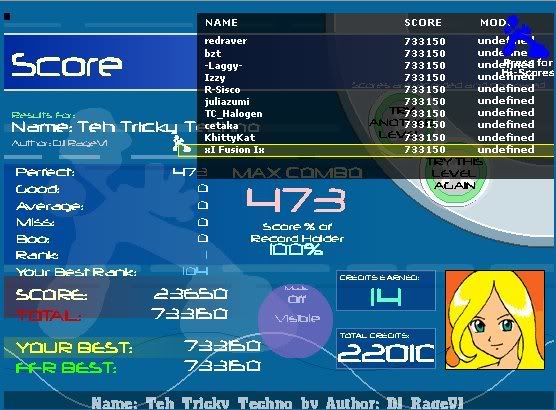 ![]() Yay for first VC FC =3!!!!!! And with only 8 boos .Man, HELLBEAT is a bitch song . I keep getting 2-8 misses everytime .
