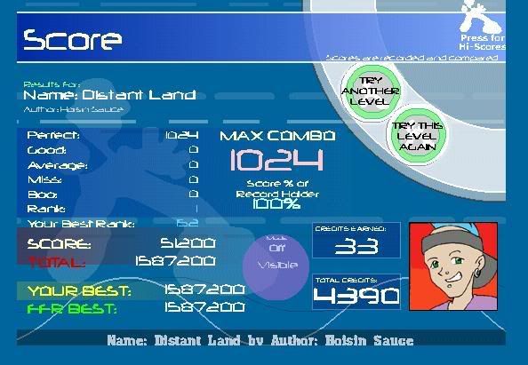 I'm glad to see the switch is working for you though. =) Anyways, just got this. ![]() ![]() Edit: Wow, I'm doing really well. I managed to AAA Distant land's not-so-distant counterpart. (Seriously, these songs sound the same.) XD ![]() Edit2: Of course it's v2...and it'll probably be 30830854058 years before I AAA v1. But still...=) ![]() Last edited by Jtehanonymous; 06-9-2008 at 06:10 PM.. |