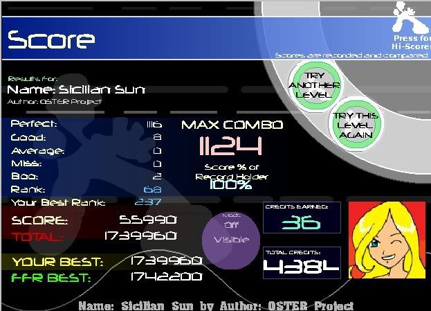 ![]() ![]() Finally got 136.6 out the way which has been bugging/annoying me for over 3 years. ![]() Got this a while ago... ![]() Not a bad AAA in my opinion - took me a while. ![]() My first really good sightread!!! ![]() Also this made me happy But i STILL cant AAA CIA Rave i cant even get close ![]()