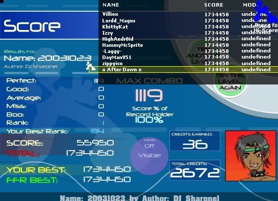 ![]() I suck at this game. I also got a boo-flag for the first time ever on Start Something but I forgot to screenshot it. Then I get this. ![]() I'm really good at not AAAing songs.