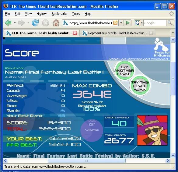 ![]() This is alright, got a lot of goods in stupid places, and oh well an average. (I could probably SDG, though I don't whore songs very often) edit: Was probably my FC run too, but I was 1,859 combo into pants with only 9 goods and it lags. I've been getting lag in my games ever since FF3... Not a lot, but at times. Last edited by LLaMaSaUceYup; 06-21-2008 at 08:32 PM.. |