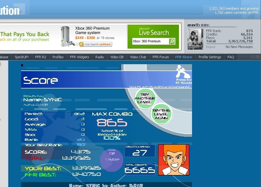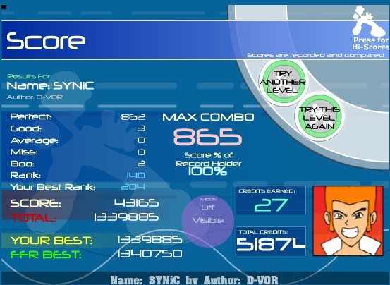 186 perfects and 3 goods http://www.flashflashrevolution.com/...oibomb/replay/ |