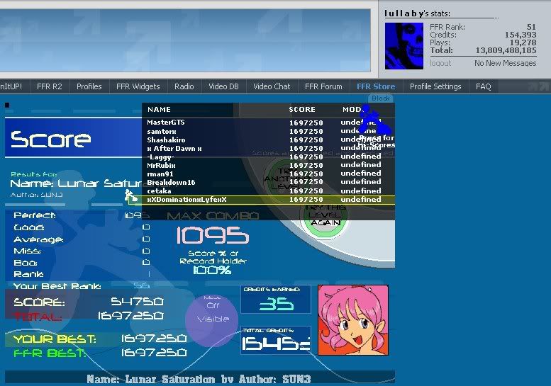 1st in Kommisar's 2009 SM Tournament 1st in I Love You`s 2009 New Year`s Tournament 3rd in EnR's Mashfest '08 tournament 5th in Phynx's Unofficial FFR Tournament 9th in D3 of the 2008-2009 4th Official FFR Tournament 10th in D5 of the 2010 5th Official FFR Tournament 10th in D6 of the 2011-2012 6th Official FFR Tournament FMO AAA Count: 71 FGO AAA Count: 10 Bluearrowll = The Canadian player who can not detect awkward patterns. If it's awkward for most people, it's normal for Terry. If the file is difficult but super straight forward, he has issues. If he's AAAing a FGO but then heard that his favorite Hockey team was losing by a point, Hockey > FFR PS: Cool AAA's Terry - I Love You An Alarm Clock's Haiku beep beep beep beep beep beep beep beep beep beep beep beep beep beep beep beep beep - ieatyourlvllol |