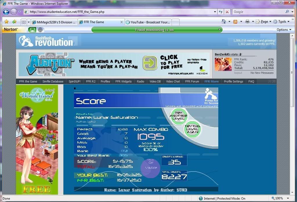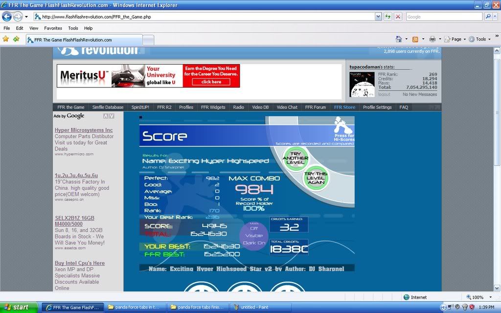 I cant improve any more on EHHS v2. I hate that song. When will there ever be a song that I am good at *sigh*. oh and 490k now! I am done betting cuz half a million credits is fine for me! I wont postwhore anymore so there. lol My score only beats one person. Hey MrMagic did you see my Rose score lol. Do you have midnight?