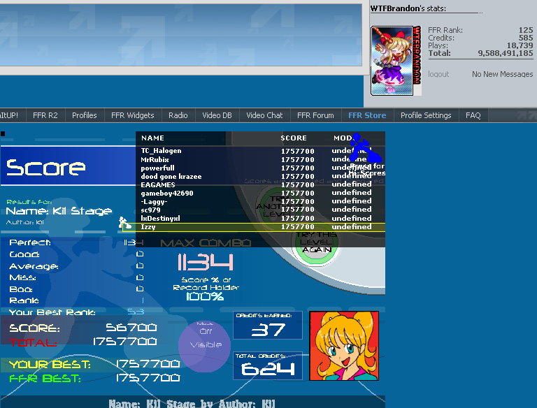 That was brutal. No really. That was the most brutal thing on FFR I've struck so far. I didn't have it, thought luck turned for the better, and then it turned again. W/e, I wasn't going to have it in the first place. What am I screaming my head off irl for. Now I gotta clean this mess... Cleaning makes a bigger mess. EDIT What I just noticed that I only had a 5 point difference with Hammy.