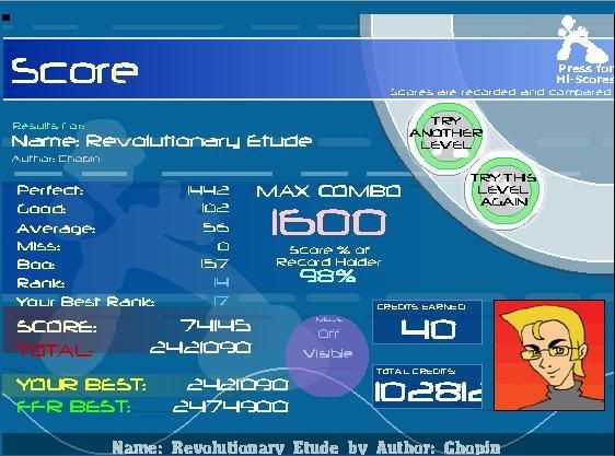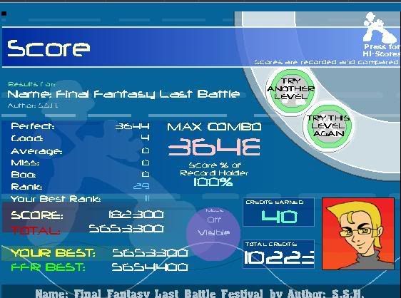 oh and good luck AAA'ing all Dance genre I want to try this in 2 monthsFC of Setsujoul. All 6 boos are somes stupid mistake that I made that I wouldn't have made in general. And yes, I know, 46 good is HUGE but I was going for the FC Setsujoul.JPG Last edited by Artic_counter; 08-23-2008 at 06:47 PM.. |