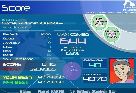 12-0-0-2 on Planet KARMA... not that hard to PA so I was kind of baffled as to how it's rank one. Could easily SDG though, I got at least four stupid goods. And it won't be hard to get a clean FC.