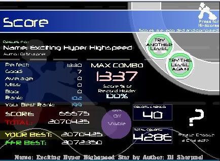 AAA's - {Midnight}, Shihen, Randomness Reactor III, Funktacular, Charge!!!, Ascii Art Core. Some other scores... I BF'ed For FFR..TWICE! Booflagged Splash Beats, 4 goods on Midnight Dragon (good for me) and 6-0-0-7 on Runny. Finally SDG'ed Runny. >.> Anywayyyys, I hit 450 AAA's. There are still at least 100 songs I can do no problem, So i expect by the end of October for me to have 550ish. ![]() EDIT: Just looked at my level ranks..I have a crap ton of 8's to go through, maybe 50-75 alone. I have all 6's and under AAA'ed though..a couple 7's. Geez, I could have like 630 TP's if I even bothered with half my levelrank. ~Soul