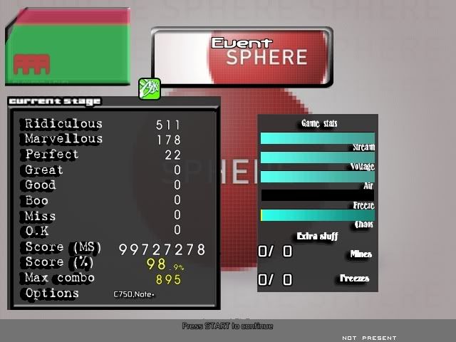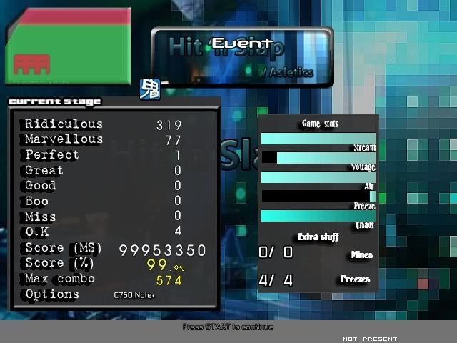 ![]() 0.9x rate. Still can't pass on 1x rate -________- ![]() First A. Really low machine score, rofl. ![]() There's a 32nd jack for ~3-4 measures at 200BPM half way through the song. All my misses came from there, rofl. ![]() First pass without smashing. I usually give up and start smashing everything.