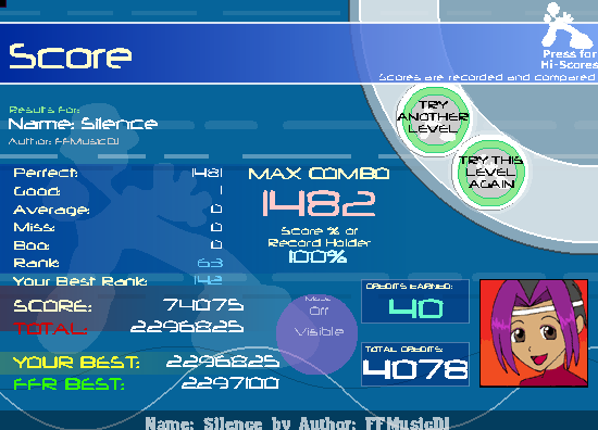 see arch0wl made it slightly offsync so you'd have to play it...Silent oho ps ![]() edit: also I know this isn't a very hard AAA but the last time I was playing I had a very bad mental block on it (I would -always- get one boo on the very ending pattern) so I'm glad to have it out of the way as fast as I did : ![]()