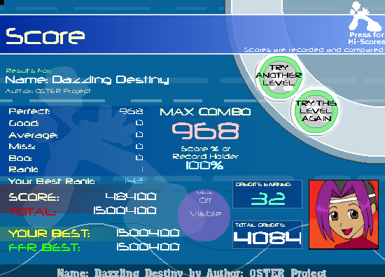 ![]() Thought I flagged it the run after but I got 3 701. Hardcore of the North 702. V1 703. Dawn 704. Mou Uta Shika Kikoenai 705. Happy Rainbow - wow, this seriously took like 12 tries, I kept screwing up random 8th notes lmao 706. Clash at the Mountains 707. Syage 708. Silence v2 709. HELLBEAT v2 710. Nippon Zenkoku GABA Ondo 711. Frozen Bond 712. Dance To Moroder 713. Crow Song 714. Ninja Lad 715. Remember 15 Years Ago... 716. Token Whore 717. Memories 718. Sunny Starry Carnival Still have 13 easy AAAs left, brothers about to come home from school so I'll probably only be able to do like 4 more. Edit: 719. Battle Ax Edit: 720. P8107 Edit: 721. Binary Rendezvous Edit: 722. Samurai Road - lol that brought me from 10.x to 8.x AvRank Edit: 723. Ride Out - Yay every VC on FFR AAAd ![]() Edit: 724. Destiny v2 Edit: 725. Zephon - Such a bad file... Edit: 726. IDOL (Danpa with Posing Guys ver) Edit: 727. Luna Marionette Edit: 728. Distant Land Edit: 729. The Five - Token AvRank is exactly 3 lulz Edit: 730. Three Ring Nightfall - Wow one part of this is sooooo damn offbeat Edit: 731. Sail AwaY K well, that's all songs VC and below on FFR AAAd. Token AvRank is 1.3971631205674. Dead and Direct though and Dendrite v2 later. Last edited by [TeRa]; 12-11-2008 at 09:08 PM.. |