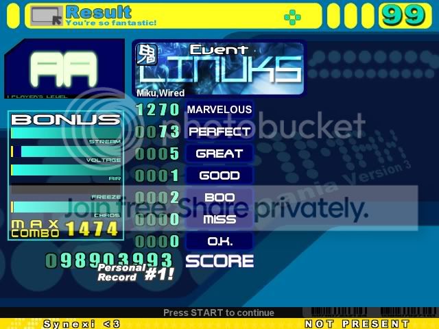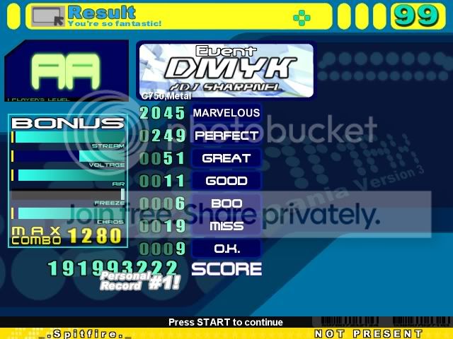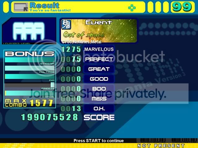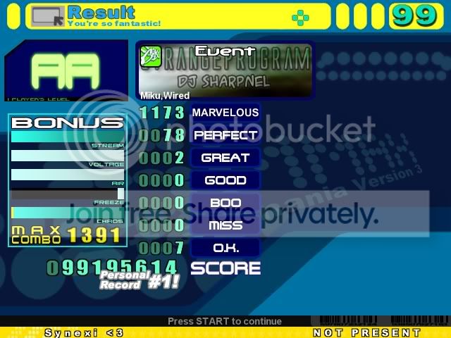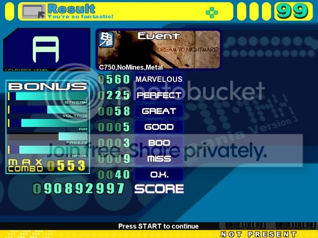 DMYK Edit AA, first time I AA'd it ![]() ![]() Out of Space AAA, oni but whatever. Oni is the most fun imo. ![]() ![]() Dream to Nightmare A, bad scorewise, but thought my combo was pretty cool. I got better scores afterwards but not as high of a combo ![]() ![]()
