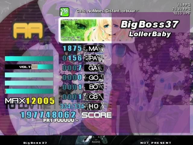 1st in Kommisar's 2009 SM Tournament 1st in I Love You`s 2009 New Year`s Tournament 3rd in EnR's Mashfest '08 tournament 5th in Phynx's Unofficial FFR Tournament 9th in D3 of the 2008-2009 4th Official FFR Tournament 10th in D5 of the 2010 5th Official FFR Tournament 10th in D6 of the 2011-2012 6th Official FFR Tournament FMO AAA Count: 71 FGO AAA Count: 10 Bluearrowll = The Canadian player who can not detect awkward patterns. If it's awkward for most people, it's normal for Terry. If the file is difficult but super straight forward, he has issues. If he's AAAing a FGO but then heard that his favorite Hockey team was losing by a point, Hockey > FFR PS: Cool AAA's Terry - I Love You An Alarm Clock's Haiku beep beep beep beep beep beep beep beep beep beep beep beep beep beep beep beep beep - ieatyourlvllol Last edited by Bluearrowll; 12-27-2008 at 01:31 AM.. |