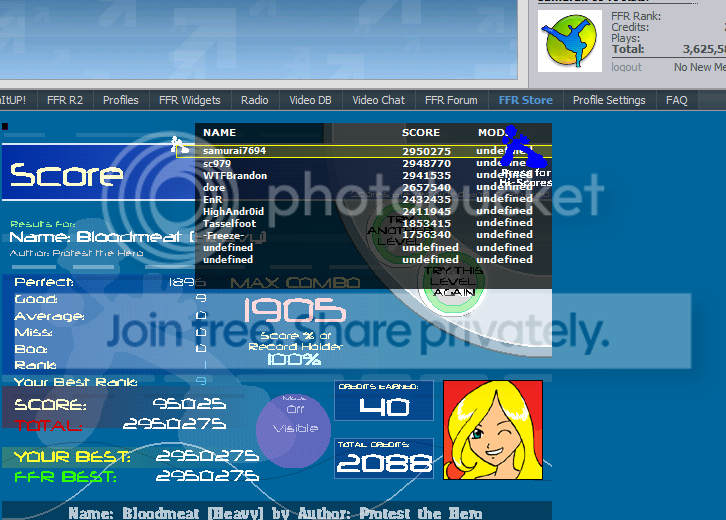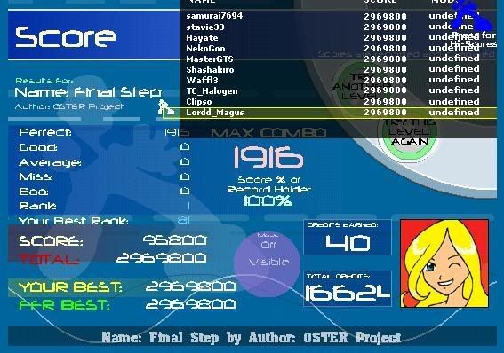 ![]() cool aaa took like 4-5 tries. bloodmeat got rank 12 fc with like 16 goods. didn't ss cuz i can do better :]