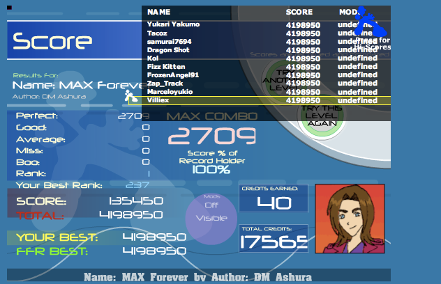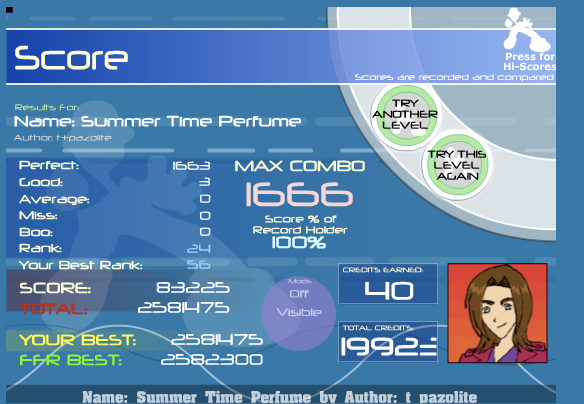 20-1-0-1 Night and Day, like my second playthrough and 32-1-0-3 Momentary Life, rushed the trills like fuc, they surprised me. Decentish? Gonna keep trying for a score to post here since I haven't in a while.