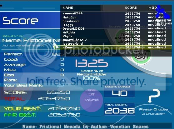 FFR Rank:643 Credits:82,864 Plays:9,006 Total:5,289,888,570 9000+ game plays and Black Key Etude FC! I'm getting bettar! And since I include token AAA's, I now have 104 AAA's total. 96 public.