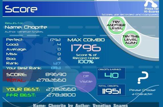 ![]() ![]() Also got 5 goods on CIA Rave :/ Blue notes >_> Edit: Now I'm doing bad on harder things; These could have been my first VC AAA's =( ![]() ![]()