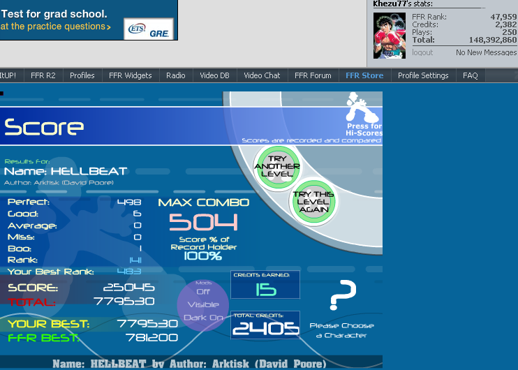 I barely kept myself from making a thread completely dedicated to this magnificent achievement. See and be amazed by my godly skill that hasn't been and will never be sup'd in the history of rhythm game as well as the history of mankind. *This score is completely legitimate. I'm not like those hackers out there. ![]() ![]() ![]() Last edited by leonid; 04-14-2009 at 07:58 PM.. |