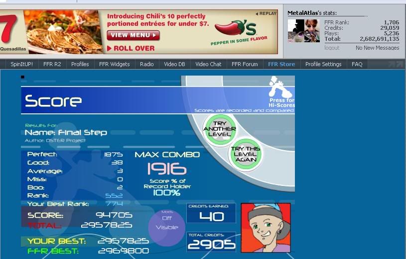 BTW, for that score, as I stated before, I simply submitted my first score that lagged no misses. I could post a better score now, but I'll let you have it this time. I'm up for the extra challenge. ;P |
