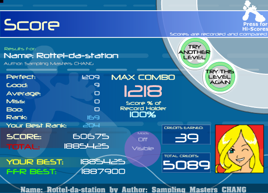 It's not that impressive of a score, but I wanted to post it because it put me at exactly 100 Average Rank, which is one of my 3 major FFR goals that I thought I would NEVER, EVER achieve (not the getting exact part, but just being able to get to 100 or below.