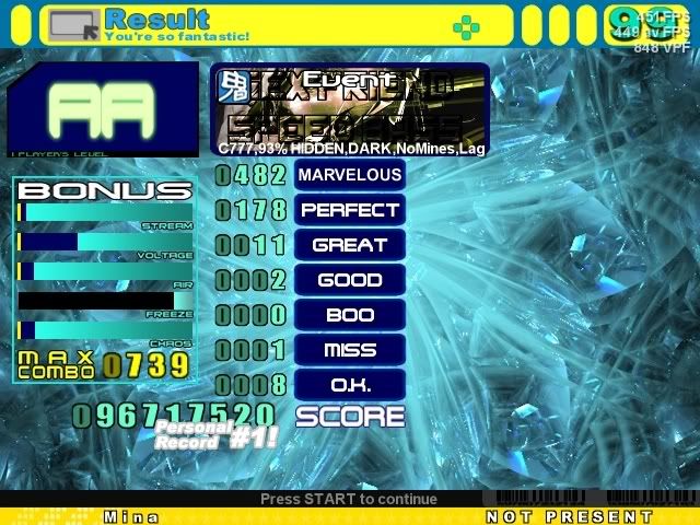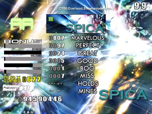 1000+marvs 500+perfs 130greats and 9 misses i didnt take a screenshot cause it wasnt an AA and i thought i was gonna get it in a few more tries but i just ended up doing worse and yes i decided to play a little stepmania cause i got bored :[ hi rebound also nice scores mni **** D: |