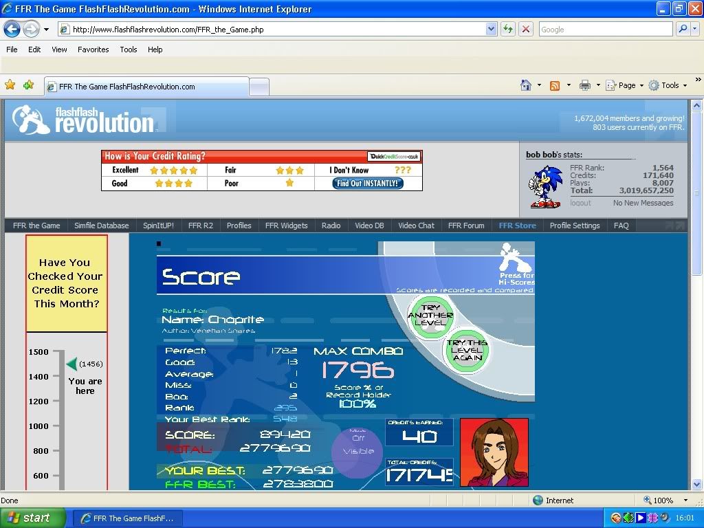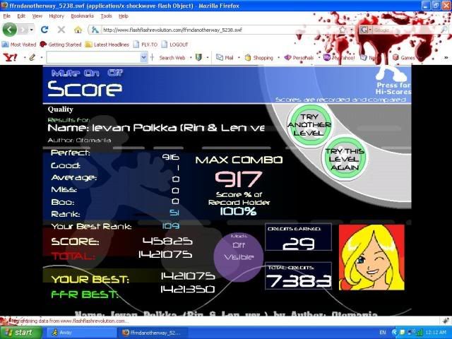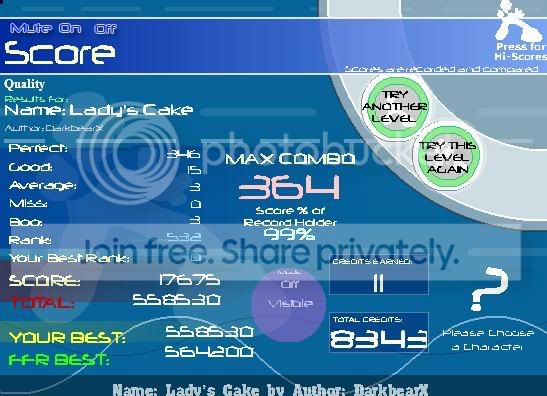 ![]() I know its not good, even for me, but I'm always proud of myself when I can FC a challenging. ![]() Assuming it's decent for me lookin at its rank. Last edited by argo15; 06-22-2009 at 10:23 AM.. |