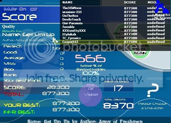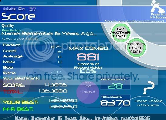 ![]() Good PA on a very difficult yay. Probably my best non-AAA score. Oh shi, 50% FCs Token get. ![]() =D First tricky AAA =P ![]() Not bad. ![]() Last edited by argo15; 06-24-2009 at 06:41 PM.. |