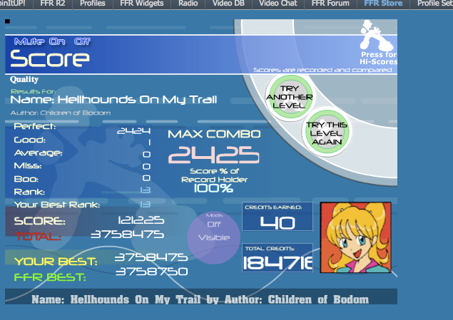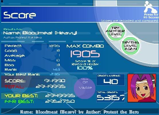 my first time near FC'ing and 5 goods better than the score I had on it before (i have no idea who did that btw, I've never FC'ed without mashing :/... gay left handed running men ngfreog missed the last fukking note, on a jump >.< ![]() EDIT: Fix'd =D and lol, got an average on that jump this this. wtf... ![]()
