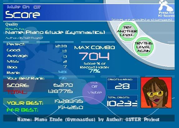 ![]() I can't do the very beginning 32nd note part, the jumpjacks in the middle and the straight 16th note jumps so I was surprised at the PA ![]() I lucked out at the end; that long jack is killer. XD ![]() |
