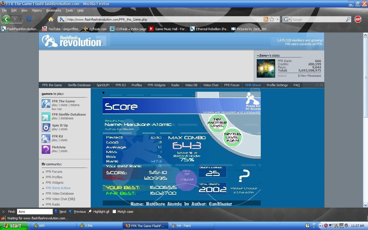 ![]() 2 tries last night, then 2 tries this morning! i forgot last night that using mirror on this song makes me suck so i changed it back and pwnd ![]() OMG though, RIGHT after i aaad it, my hand slide across my laptop and i must of hit some keys because my page refreshed and i was so scared it didnt have enough time to record. but thank god it =] |