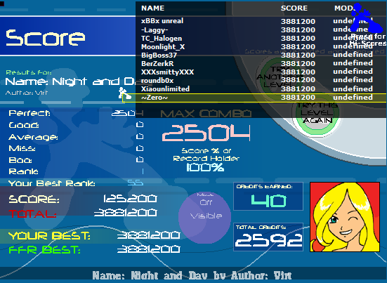 ![]() Nothing amazing, but some BFs turned to AAAs that I couldn't do 6+ months ago, which was the last time i played FFR for anything other than adding files. Avrank back under 50.