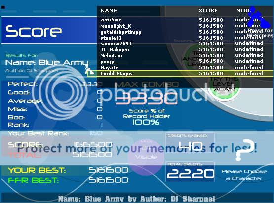 rofl they are considered too easy now. >.> oh well. working on VC's then since i got alot of em left xD this song is surprisingly fun, i used to hate it but now its like my favorite beat. ![]() |
