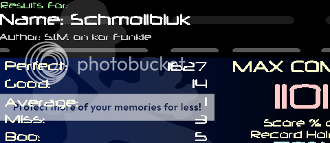 1st in Kommisar's 2009 SM Tournament 1st in I Love You`s 2009 New Year`s Tournament 3rd in EnR's Mashfest '08 tournament 5th in Phynx's Unofficial FFR Tournament 9th in D3 of the 2008-2009 4th Official FFR Tournament 10th in D5 of the 2010 5th Official FFR Tournament 10th in D6 of the 2011-2012 6th Official FFR Tournament FMO AAA Count: 71 FGO AAA Count: 10 Bluearrowll = The Canadian player who can not detect awkward patterns. If it's awkward for most people, it's normal for Terry. If the file is difficult but super straight forward, he has issues. If he's AAAing a FGO but then heard that his favorite Hockey team was losing by a point, Hockey > FFR PS: Cool AAA's Terry - I Love You An Alarm Clock's Haiku beep beep beep beep beep beep beep beep beep beep beep beep beep beep beep beep beep - ieatyourlvllol |