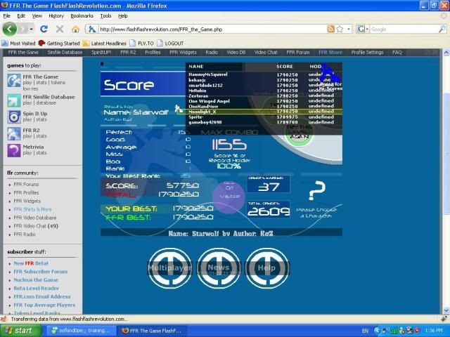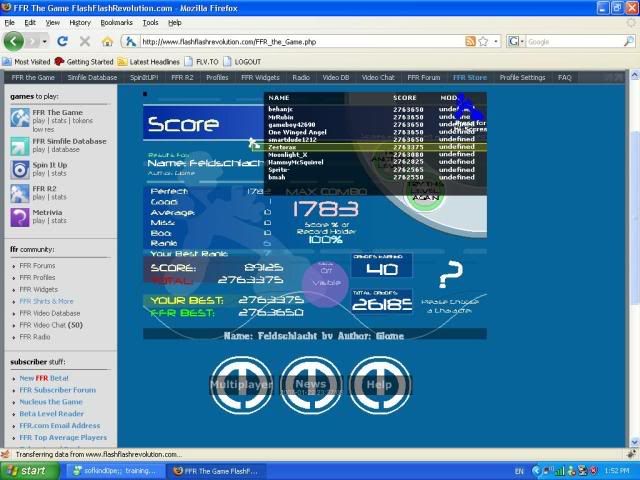 Removed a .gif image so your total signature size isn't well over 1MB. Keep this in mind for the future. 5th Official FFR Tournament Scores (Division 5) Round 1: Novo Mundo (AAA) Round 2: 4 Chord Touhou (AAA) Round 3: October (1.0.0.1) Round 4: Silly Symphony (1.0.0.0) Round 5: Hardkore Atomic (4.0.0.1) Round 6: Blue Rose (2.0.0.0) Round 7: La Dump (Eliminated for being lazy.) ![]() Quote: