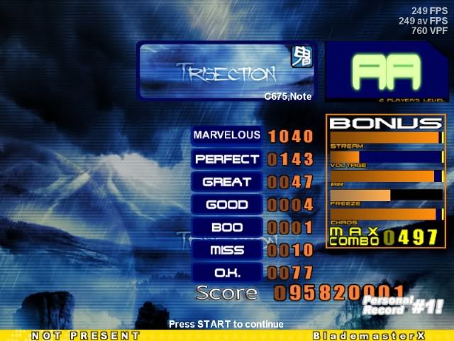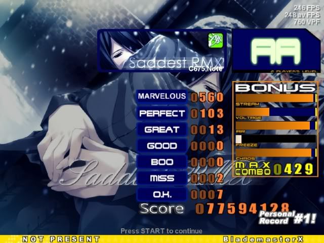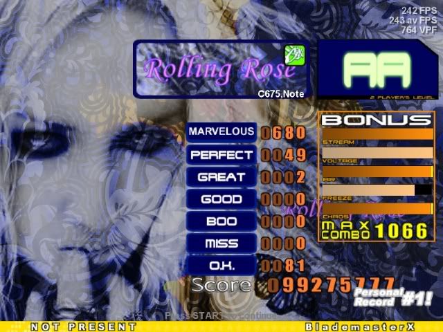 first AA (prolly bad) ![]() Posting solely for cbs... I usually get like mid-70/80s PA. >_> ![]() This probably could have been a FC, but my computer says otherwise ![]() I KNOW this would have been a FC, but my computer says otherwise ![]() Thought it was nice, lagged at a good moment (where I got both greats) ![]() I'm pretty bad at this file so this is a nice score for me (also first AA rofl) ![]() CBs etc ![]()