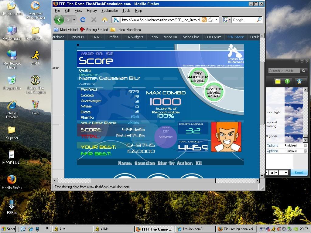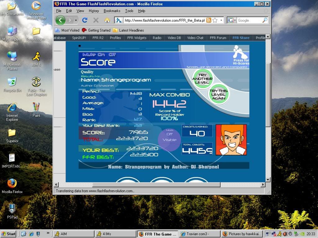 Removed a .gif image so your total signature size isn't well over 1MB. Keep this in mind for the future. 5th Official FFR Tournament Scores (Division 5) Round 1: Novo Mundo (AAA) Round 2: 4 Chord Touhou (AAA) Round 3: October (1.0.0.1) Round 4: Silly Symphony (1.0.0.0) Round 5: Hardkore Atomic (4.0.0.1) Round 6: Blue Rose (2.0.0.0) Round 7: La Dump (Eliminated for being lazy.) ![]() Quote: